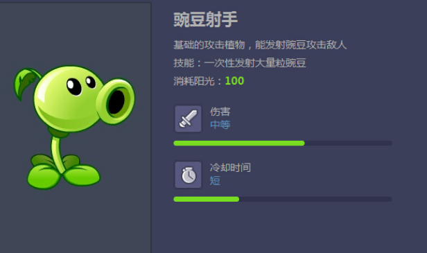 1.豌豆手:豌豆手可以说是你的第一道防线。他们向入侵的僵尸投掷豌豆。伤害:普通花费:100,恢复:快。