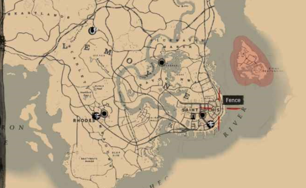 4.第四个圣丹尼斯(St. Denis)位于地图右下方的罗德岛(Rhode Town)东部。