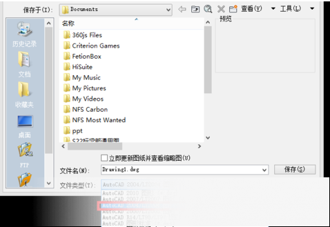 将文件类型更改为较低版本,例如“AutoCAD 2004/lt2004 graphics(”。DWG)“格式