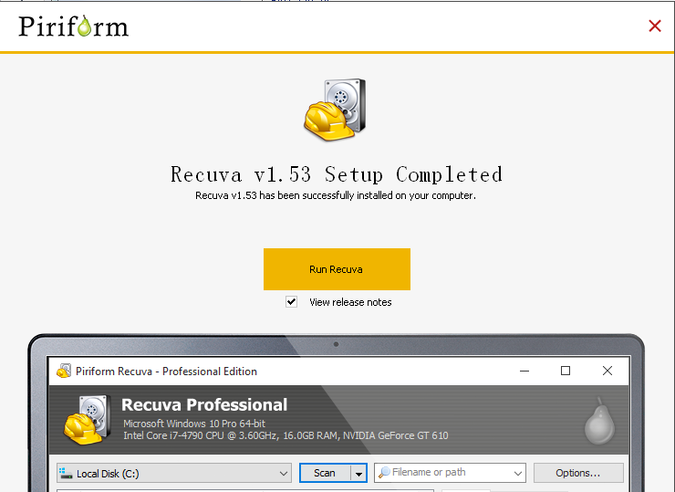 3、将工具解压后,找到recuvaexe,双击执行(直接在压缩包中直接运行当然也可以)