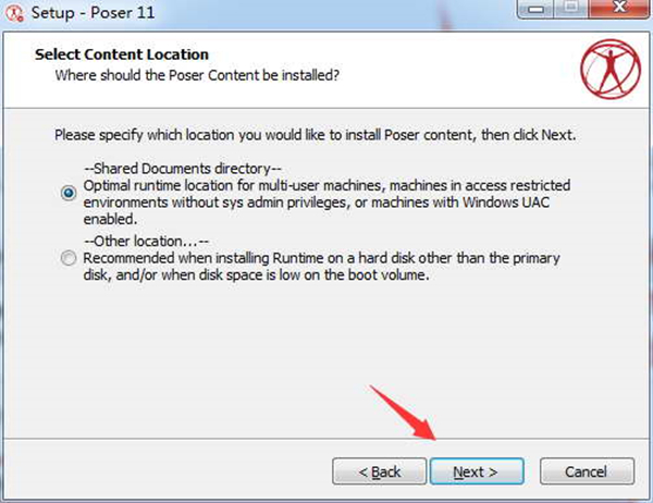 选择Poser pro11安装路径,这个大家自己选择磁盘空间大一点的就可以了,然后点击next。