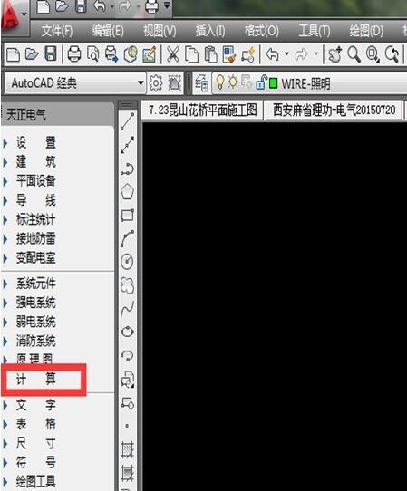 1.打开天正电气2014,点击左侧工具栏中的“计算”按钮;