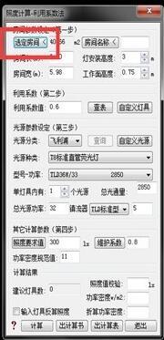 5.然后返回,在照度计算框中选择利用系数值、光源类型和型号等参数,可以根据自己的要求进行设置。