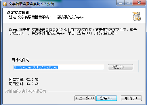 4.点击“浏览”选择文字转语音播音系统安装目录。不建议安装在c盘,而是安装在d:program