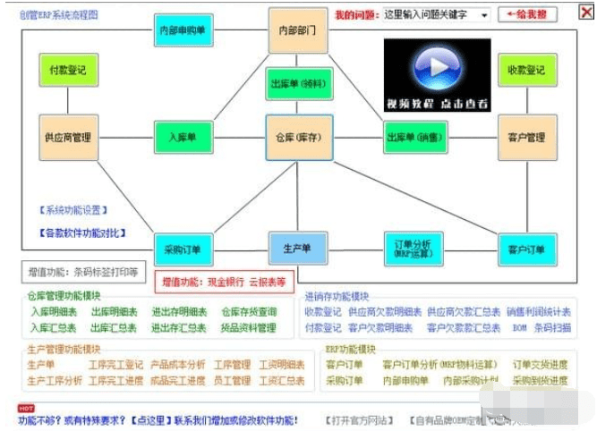1.基础数据模块 包括功能:供应商管理、客户管理、内部部门管理,货品管理、货品分类、EXCEL批量导入、产品构成表BOM表功能、编码自动生成功能、条形码扫描功能、产品的生产工序表