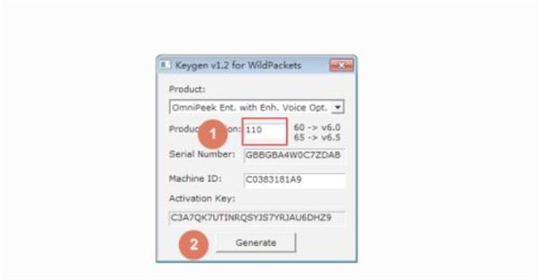 5.我们填写& # 8221;110″,点击生成按钮生成激活键值,如图所示;