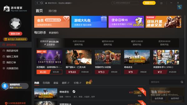 3.Steam游戏最低1%折扣购买,促销游戏打折。