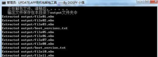 c、点击“解包.bat”批处理文件进行解包,在output文件夹里面就有我们需要的system.img、boot.img、recovery.img、cust.img等文件C.点击“Unpack.bat”批处理文件进行解包,输出文件夹中有我们需要的文件,如system.img、boot.img、recovery.img、cust.img。