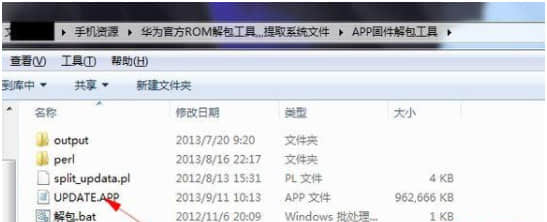 1.解压华为固件包,找到。应用程序,并把。APP文件与“APP固件解包工具”在同一文件夹中。