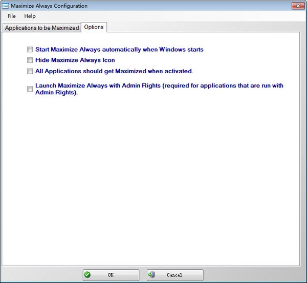 Maximize Always是一款体积小巧简单实用的程序窗口最大化管理工具软件,能够帮助用户在启动任务程序时保持窗口最大化,有效节省在启动和保持最大化常用程序的时间,十分实用。