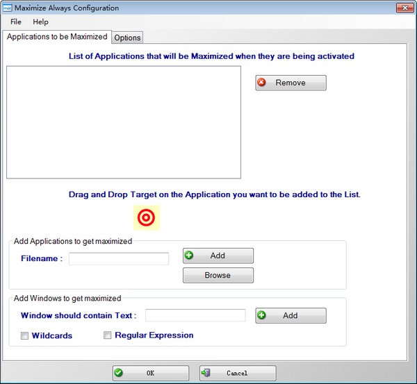 通过将目标图像拖放到应用程序窗口中,可以将应用程序添加到要最大化的应用程序列表中。