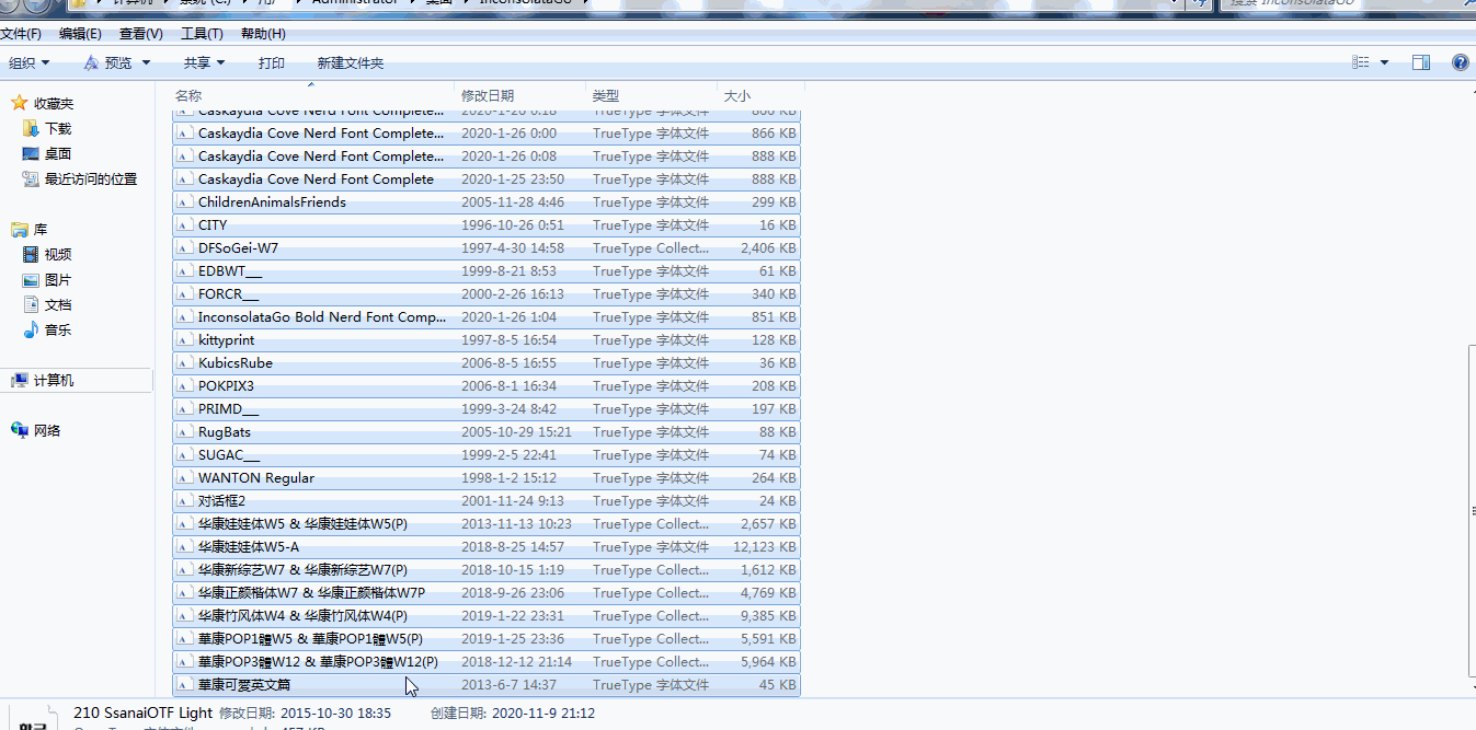 这种方法最直接、简单,把下载好的字体全部选中,右键菜单中,选择【安装】