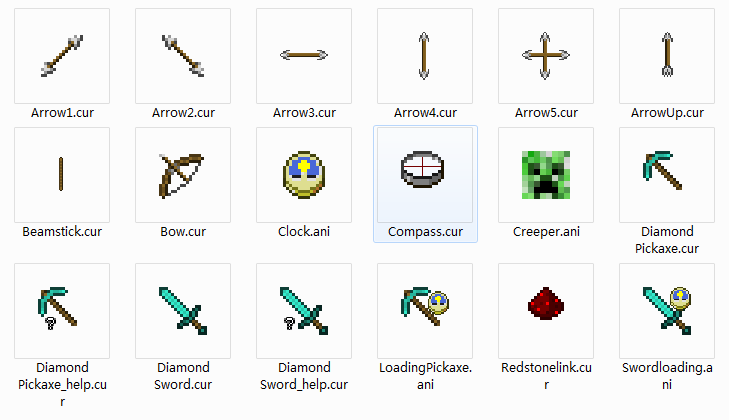 我的世界钻石剑鼠标指针是一款很好看的鼠标指针。我的世界鼠标指针能将鼠标指针变为我的世界专属的指针钻石剑啊,苦力怕啊红石啊都有,是MC的粉丝那就绝对不要错过这个指针。如果你觉得电脑自带的鼠标样式不好看,就可以用该软件进行替换,可以替换成自己喜欢的鼠标指针样式。