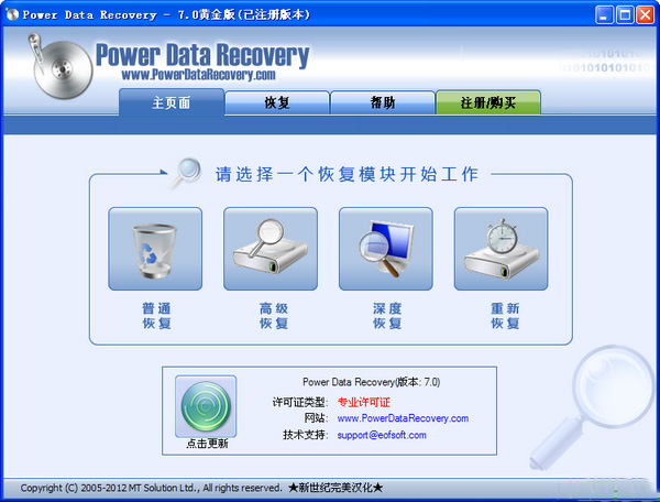 绿色汉化版下载后解压无需安装即可使用,首先运行“PowerDataRecovery.exe”,就会看到Power Data Recovery的主界面: