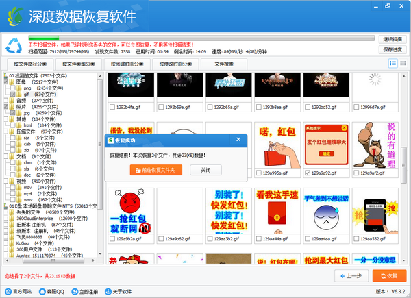 3、边扫描边显示,找到数据即可恢复,不用等扫描完成。