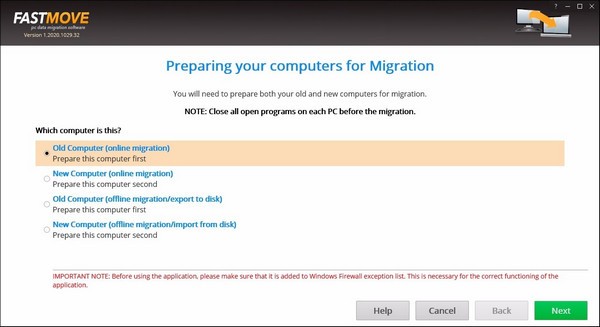 或使用Fast Move将所有用户帐户和设置从旧PC迁移到新PC。