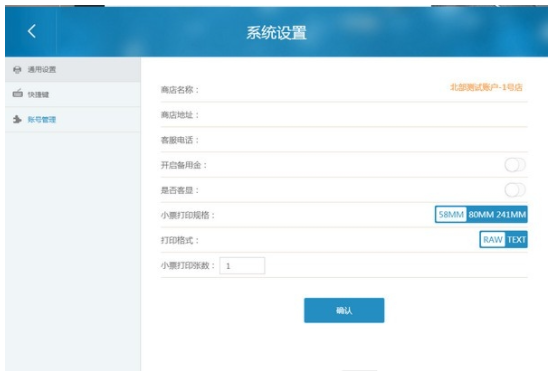点击“系统设置”按钮,可以进行“打印小票设置”。