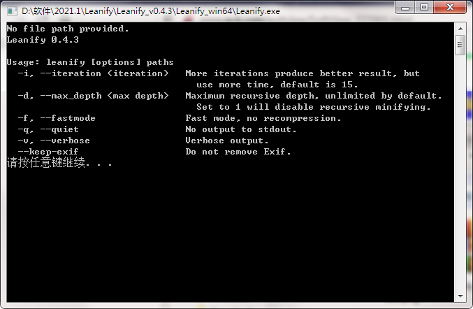 Leanify允许您一次压缩多个文件,甚至可以设置所需的迭代次数。该应用程序还支持递归最小化,并且可自定义的最大递归深度。