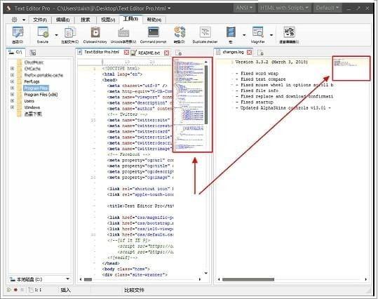 Text Editor P作为一个免费的高级文本编辑器,它带有的各种特能够大大提高你处理文本的效率,如标签页设计,侧边栏功能,语法高亮等功能,而且它还支持单栏、双栏甚至是三栏显示,方便你对比和编辑多个文本。