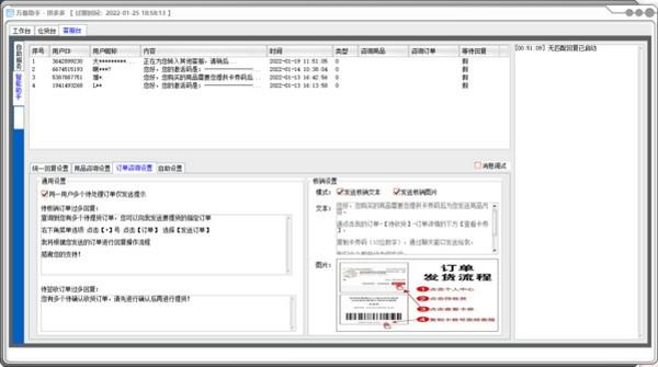 万备助手是一款服务于拼多多的辅助工具,他可以帮助电商们去收集自家客户的需求ID,昵称,内容等,从而更加方便自己管理客户和服务客户,此外软件也可以支持自动发货,自动上架等等作,让用户们的网店服务更加的智能。
