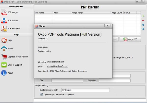Okdo PDF Tools Platinum是一款PDF工具箱软件,可以对pdf文件进行拆分,合并,加密三种作,可以将一个PDF文档拆分为多个文件,或者将多个PDF文件合并成一个文件。