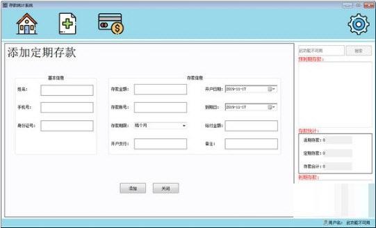 存款统计系统电脑版是一款安全能强的、用于存款统计的储户存款工具,存款统计系统最新版可以将用户的储户都记录下来,包括到期时间、电话号码、身份证等,并且非常安全可,存款统计系统是一款方便自己统计客户存款用的,满足用户的需求。