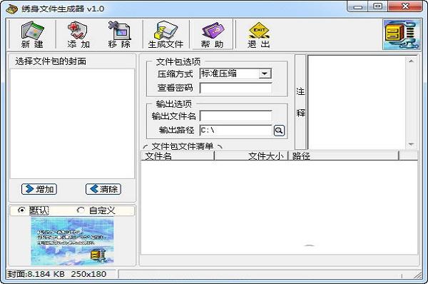 绣身文件生成器正式版是个能够将文件伪装成其他软件的工具,可以简单的把文件包(支持压缩)添加到图片文件中去,图片文件可以正常打开,但将图片文件的扩展名改成ZIP文件后,文件就可以用WINZIP或WINRAR程序打开了。使用它有个好处就是可以把绣身文件当作一个图片发布到论坛或其它网络空间上,浏览者可以正常浏览图片。将显示的网络图片下载到本地后改成ZIP文件可以用压缩软件打开其中的隐藏内容。
