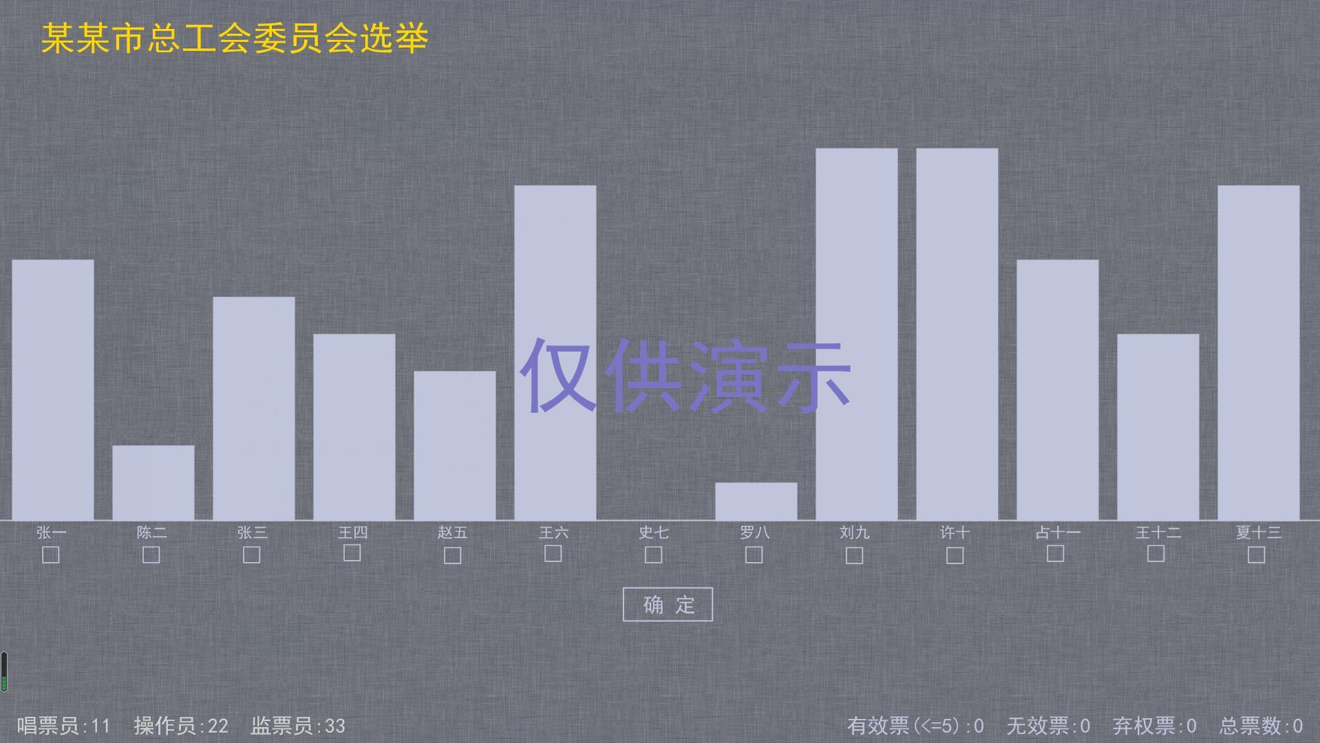 3、主界面候选人下方勾选后,单击确认按钮,开始唱票
