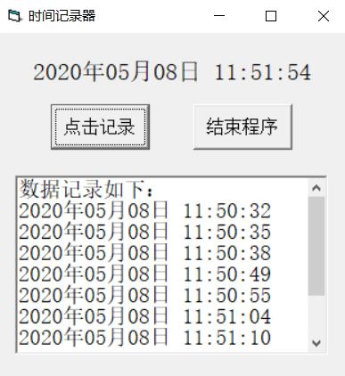 2.点击“点击记录”按钮可以在程序内记录当前时间,可多次记录并翻阅