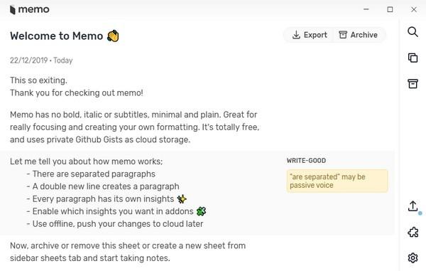 Memo云笔记最新版备忘录没有粗体,斜体或字幕,最小和平原。这对于真正关注和创建自己的格式非常有用。它是完全免费的,并且使用私有Github gist作为云存储。