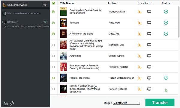 本软件可将 Kindle 上的书传输到另一台 Kindle 或电脑上,同时电子书是 DRM-free 的,这意味这用户可以轻松转换电子书格式,实现跨平台阅读。同时,该软件也支持传输Kobo 电子书的转移作。