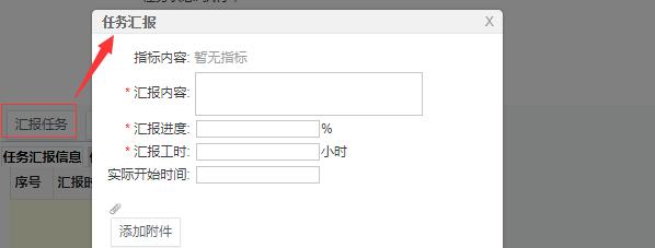 汇报任务,点击后会弹出汇报任务框,填写上要汇报的内容,这里只能按天汇报,汇报工时不能超过8小时。