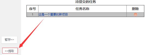 可以通过 提取按钮 从 待提交的任务 中选中后-》提取到 编辑中的任务 中。