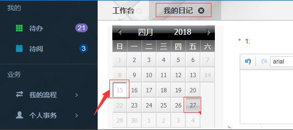 进入我的记后,左上角有一个历,干什么用的呢,选子用的,选择你所写志的子用的,默认是当天,你也可以补写以前的期的记。