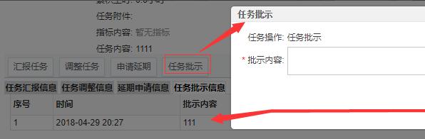 任务批示,这个好像是所有人都可以写,试过是配合人和布置人,执行人都可以写。写完批示后,执行人那边会弹出一个消息提示。