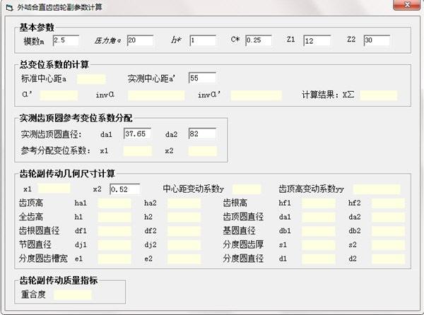 总变位系数的计算,包括标准中心距,实测中心距的参数输入