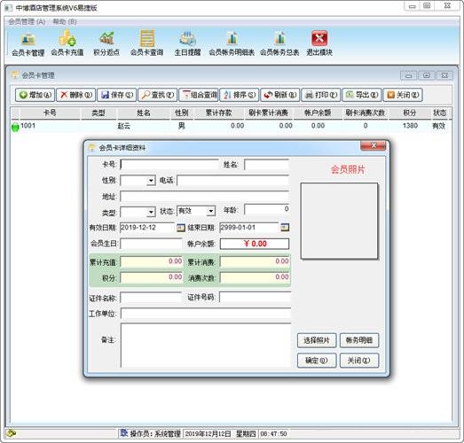 中博酒店管理系统V6版的用户界面为标准WINDOWS风格,支持鼠标、键盘、右键快捷菜单、拖放等各种作。