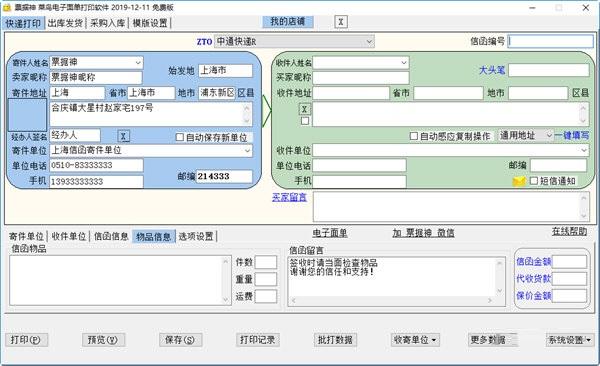 1、绿色免费:票据神菜鸟电子面单打印软件版只是一个大小为200K左右的EXE程序文件,并且您可以免费使用;