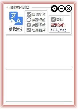 四叶轻翻译版是款十分专业、翻译精准、灵活实用的翻译软件,四叶轻翻译版功能齐全、作速度快,支持自动识别中英文,支持划词翻译,划词自动朗读,支持朗读翻译前的文本,四叶轻翻译最新版也可以朗读翻译后的文本!