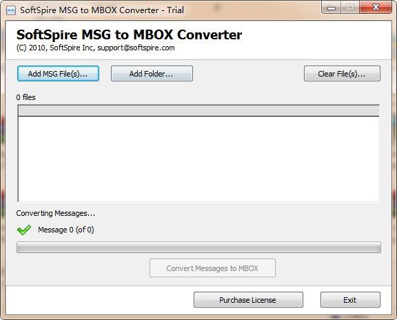 SoftSpire MSG to MBOX Converter最新版是一款专业高效且作非常简便的MSG到MBOX 转换器, SoftSpire MSG to MBOX Converter最新版够帮助您把MSG转换为MBOX文件格式,SoftSpire MSG to MBOX Converter版作简便以上有拥有易于使用的图形界面,使任何非技术人员都可以使用。