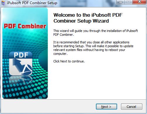 1、打开ipub_pdf_combiner.exe软件将其安装,点击next