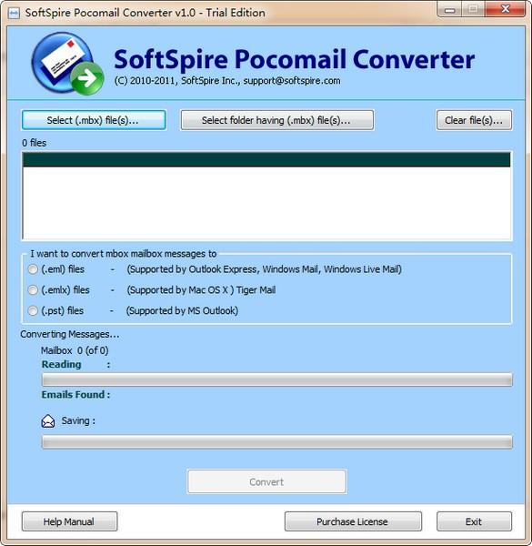 SoftSpire Pocomail Converter版是一款专业高效且非常实用的Pocomail转换工具,SoftSpire Pocomail Converter版主要功能在于帮助您从一个电子邮件客户端移动到另一个客户端,SoftSpire Pocomail Converter最新版还能够支持将Pocomail转换为PST(Outlook)、EML(Live Mail、OE)和EMLX(Mac OS X Mail)。