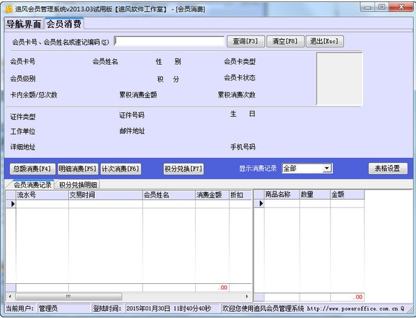 针对不同行业,系统提供“总额消费”、“明细消费”、“计次消费”三种消费模式,消费时可快速查阅历史消费记录。