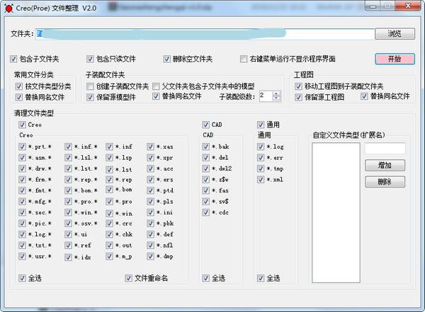 1.批量清理Creo(Pe)小版本文件,只保留一个最大版本文件;批量清理Creo(Pe)、CAD和自定义的无用垃圾文件。