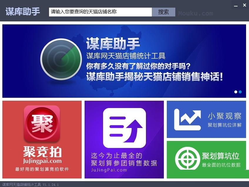 谋库助手――天猫店铺计算器,通过天猫店铺的数量、额、客单价、额占比、数量占比、财务报表等360°全方位透析天猫店铺全面数据体系,大数据时代等你来解析!