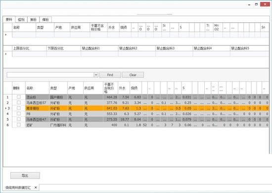 铁前原料配比优化工具中文版是一款小巧实用的辅助工具。铁前原料配比优化工具中文版这款软解是经过了不断的更新于现代钢铁企业的磨合,软件有非常好的实用。铁前原料配比优化工具最新版该软件内部系统稳定,计算准确。作也简单,适应企业发展,保证了各环节成本的降低。提高了企业成本的节约,和工作的效率。