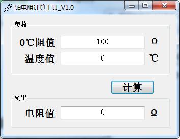 输入要参数(0度阻值及温度值),点击计算,可以得到铂电阻的相应电阻值。
