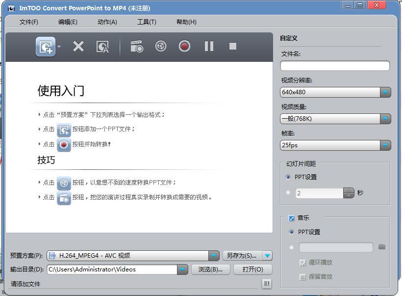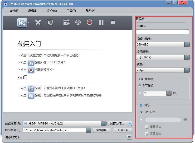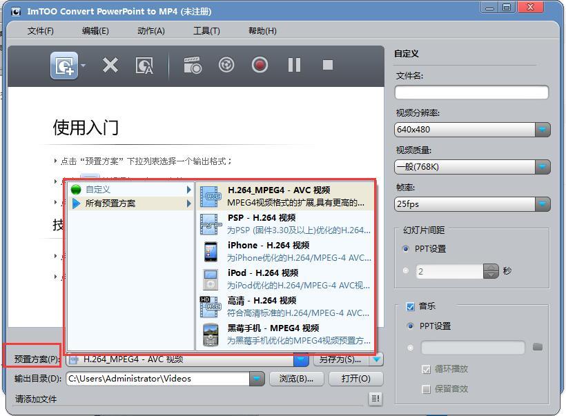 ImTOO Convert PowerPoint to MP4版无需Micsoft PowerPoint的支持,即可将PPT转换为MP4、MPEG4、H.2 / MPEG4 C或全高清1080p HD-H.2格式的。