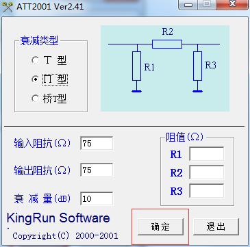 1、这本站下载文件找到”电阻衰减计算Att2001.exe”双击运行;