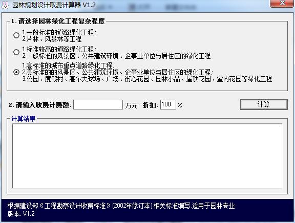 园林规划设计取费计算器功能介绍